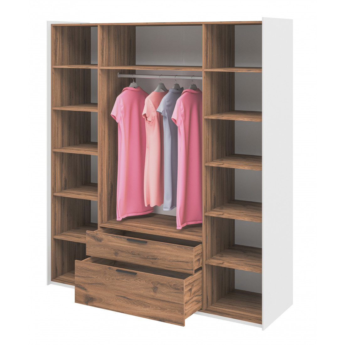 Элегантный шкаф Модена создает изысканную атмосферу в вашей спальни. Предлагается в трех стильных вариантах цветов: Белый-Дуб Элисон, Лунный камень-жемчуг, Металл Бруклин-лунный жемчуг.
