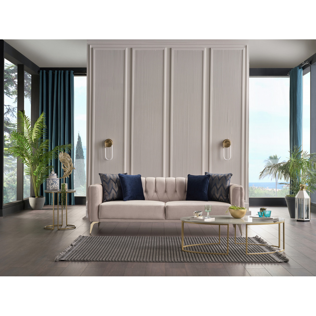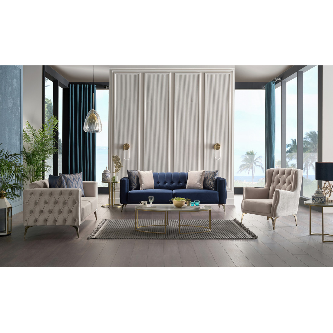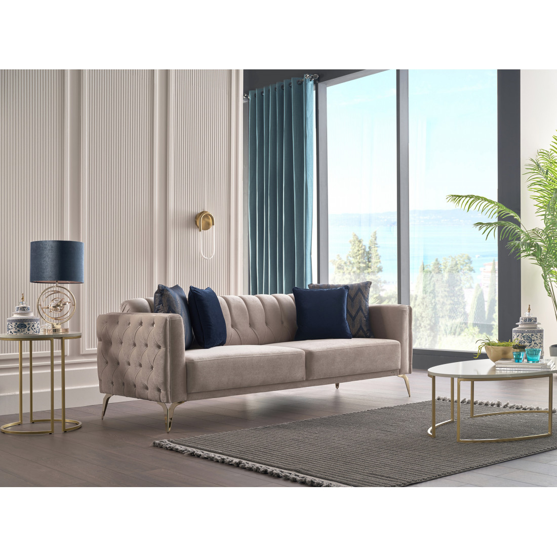 У новинки, на спинке и боковинах присутствует ручная каретная стяжка, придавая ей богатый и благородный внешний вид.