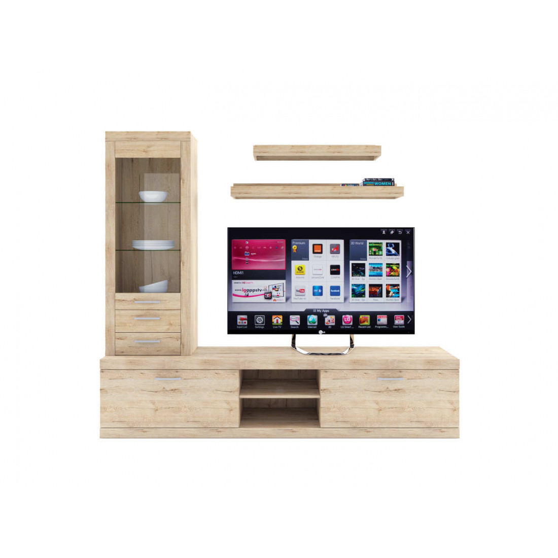 - 4 варианта тумб RTV с выдвижными ящиками на шариковых направляющих. 2 размера надставных полок для RTV-тумб (полка TVB и полка TV), позволяющих установить выше телевизор. Варианты навесных полок, соответствующих по размеру тумбам для телевизора. Тумба RTV 2S2NL имеет глубину 351 мм, что позволяет составить модули, имеющие такую же глубину, в одну линию без выступающих элементов.