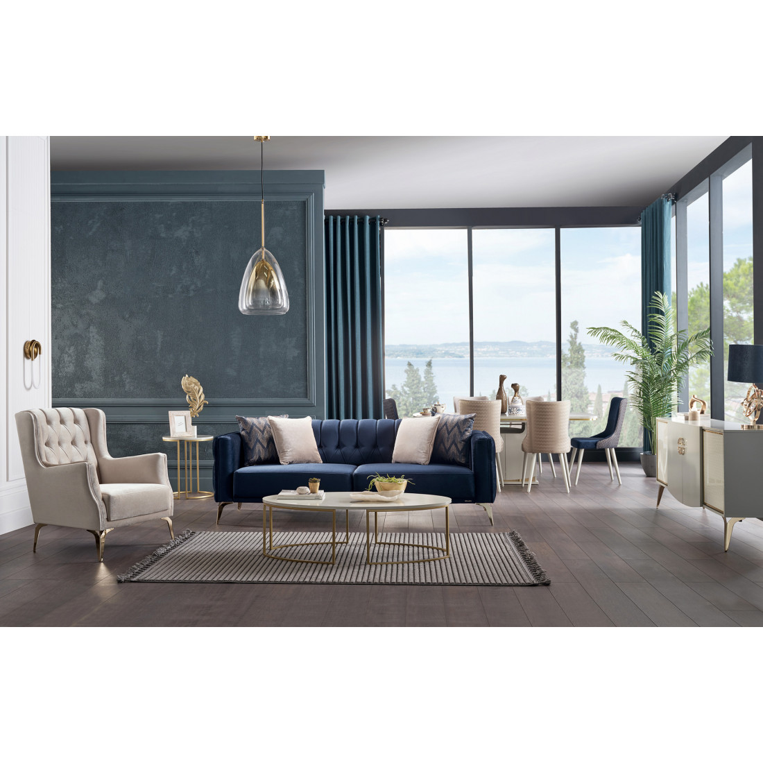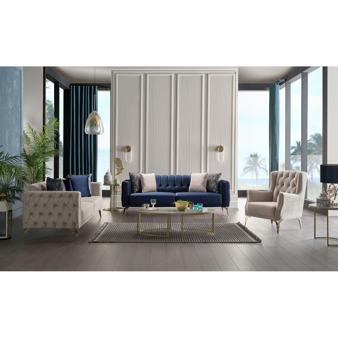 У новинки, на спинке и боковинах присутствует ручная каретная стяжка, придавая ей богатый и благородный внешний вид.