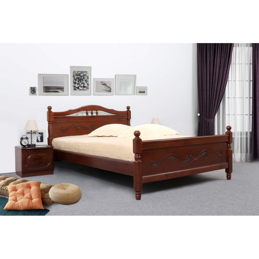 Стильная двуспальная кровать из массива сосны Людмила-17 тонированная от фабрики МебельГрад.
