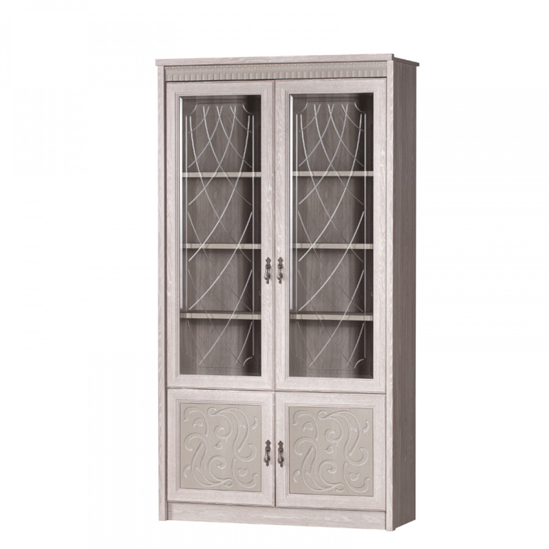 Фасады: МДФ, декор – дуб оксфорд серый, патина, зеркало с фацетом