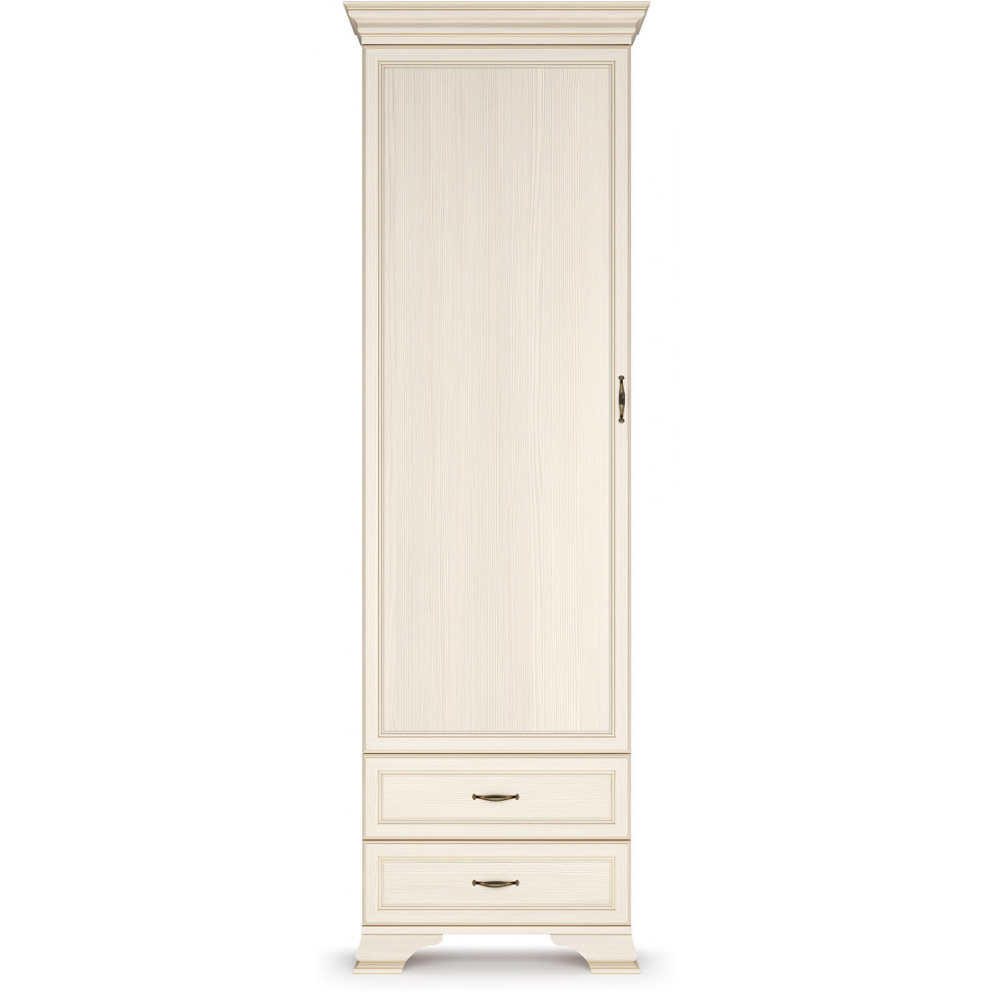 Коллекция производится в текстуре «бодега белый» с эффектом золотого патинирования. Облик «Сиены» дополняют рамочные фасады и карниз в классическом стиле, а также эффектные опоры из МДФ. Мебель комплектуются металлической лицевой фурнитурой премиум-класса в цвете «старая бронза» и надежной крепежной фурнитурой.