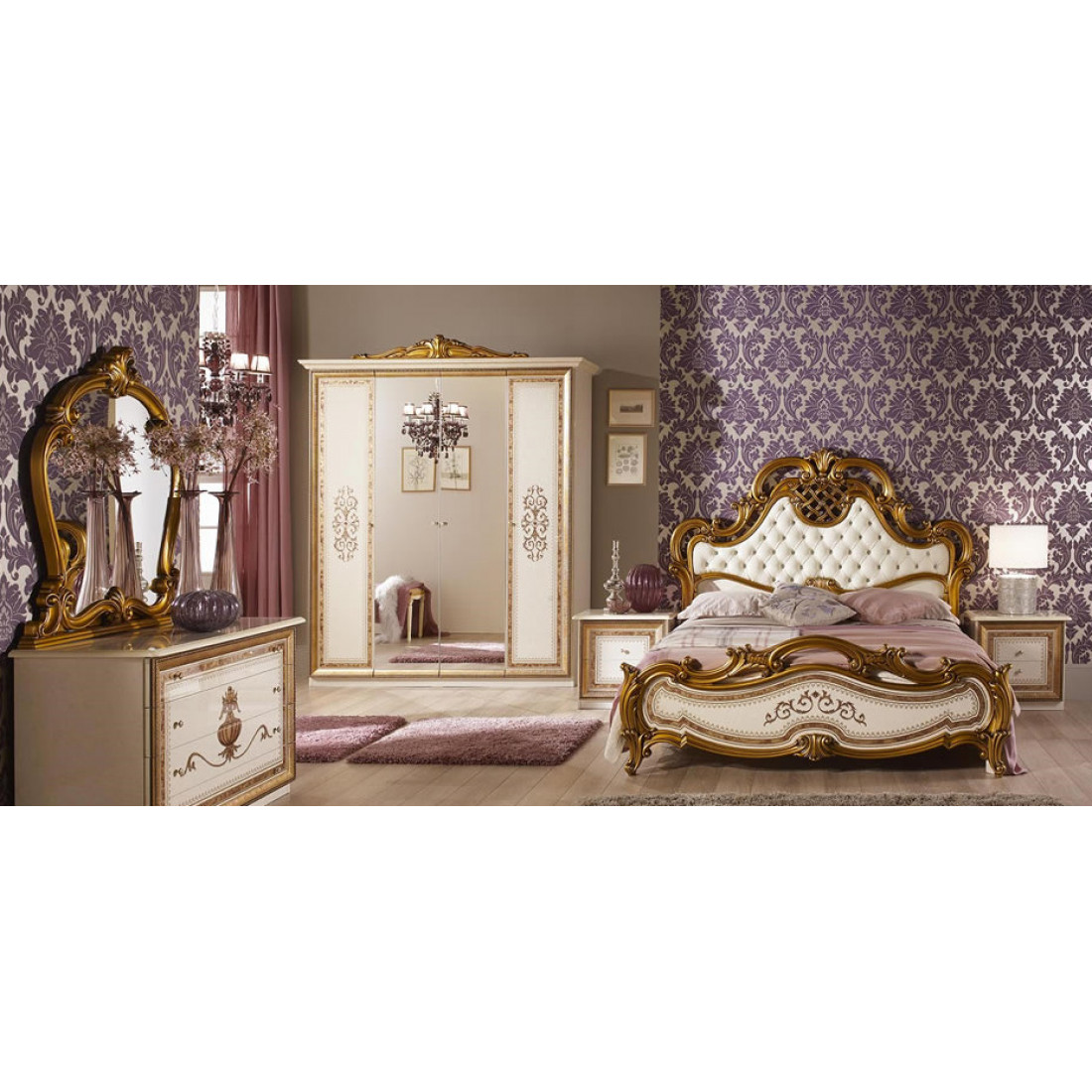 Спальня Анита (беж) от Российской фабрики «ДИА мебель» Выполнена в бежевом цвете с отделкой золотых фасадов. Классический стиль придают интерьеру неповторимую уникальность и роскошь. Изгибающие линии кровати и зеркала придают легкость и воздушность спальне.  Коллекция "Анита" придаст вашей спальне экстравагантность и принесет свежие нотки в Ваш дом.