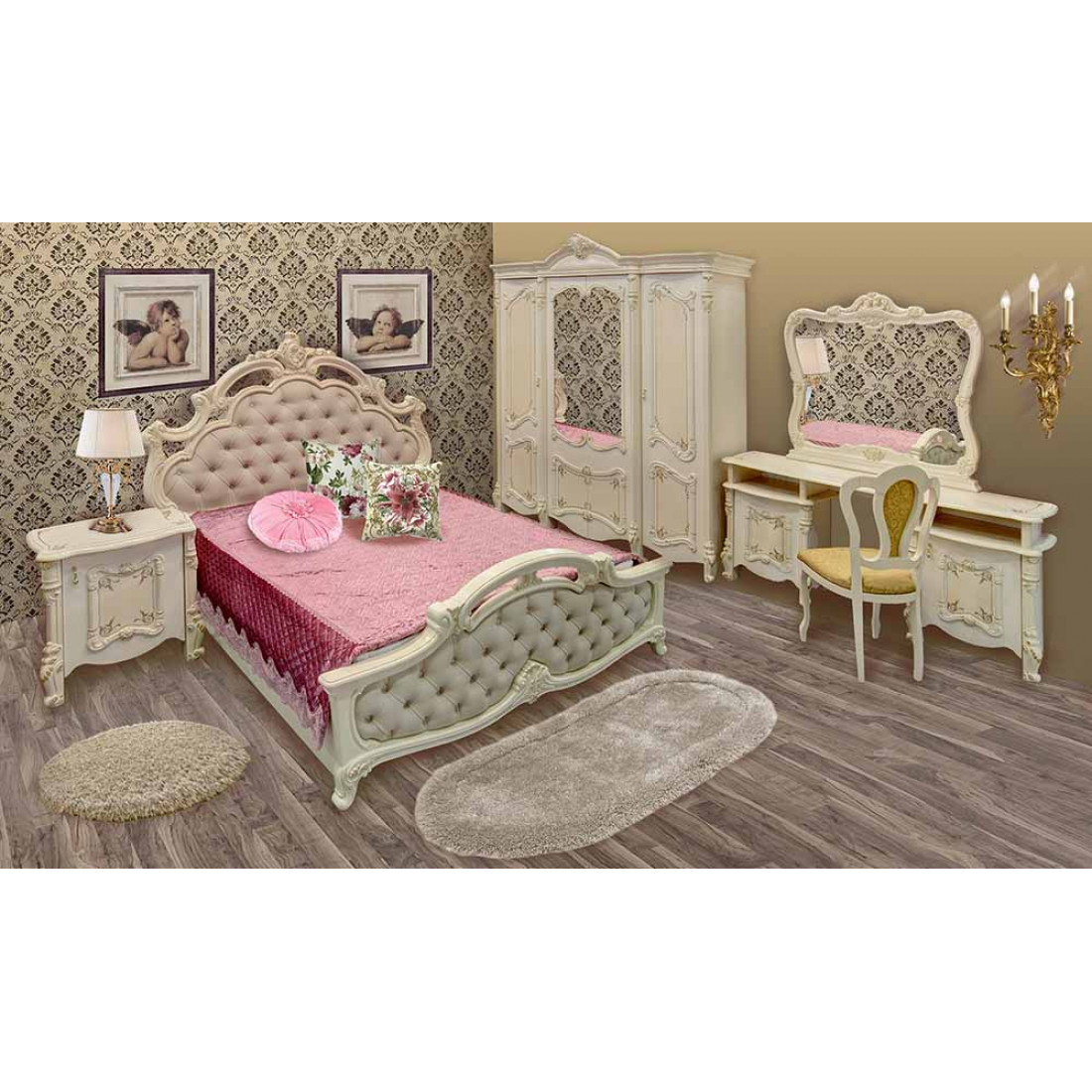 Спальня Рафаэлла от Российской фабрики «ДИА мебель», выполнена в элегантно нежном бежевом цвете. Такая  спальня в сочетании с глянцевым покрытием и резной вставкой придаст незабываемую атмосферу роскоши. Большая комфортабельная кровать окунет Вас в незабываемый крепкий сон. Объемный четырехстворчатый шкаф поможет забыть о лишних вещах и сделать комнату многофункциональной. Большое зеркало визуально расширит пространство. Вся коллекция «Рафаэлла» предназначена для людей умеющих по достоинству оценить комфорт.
