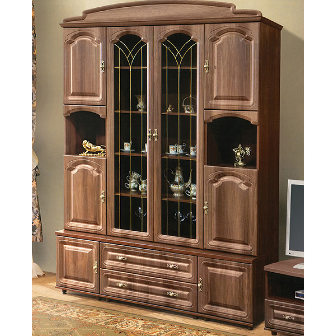 Стенка для гостиной Романтика ВК-09.3, цветовое исполнение орех темный.