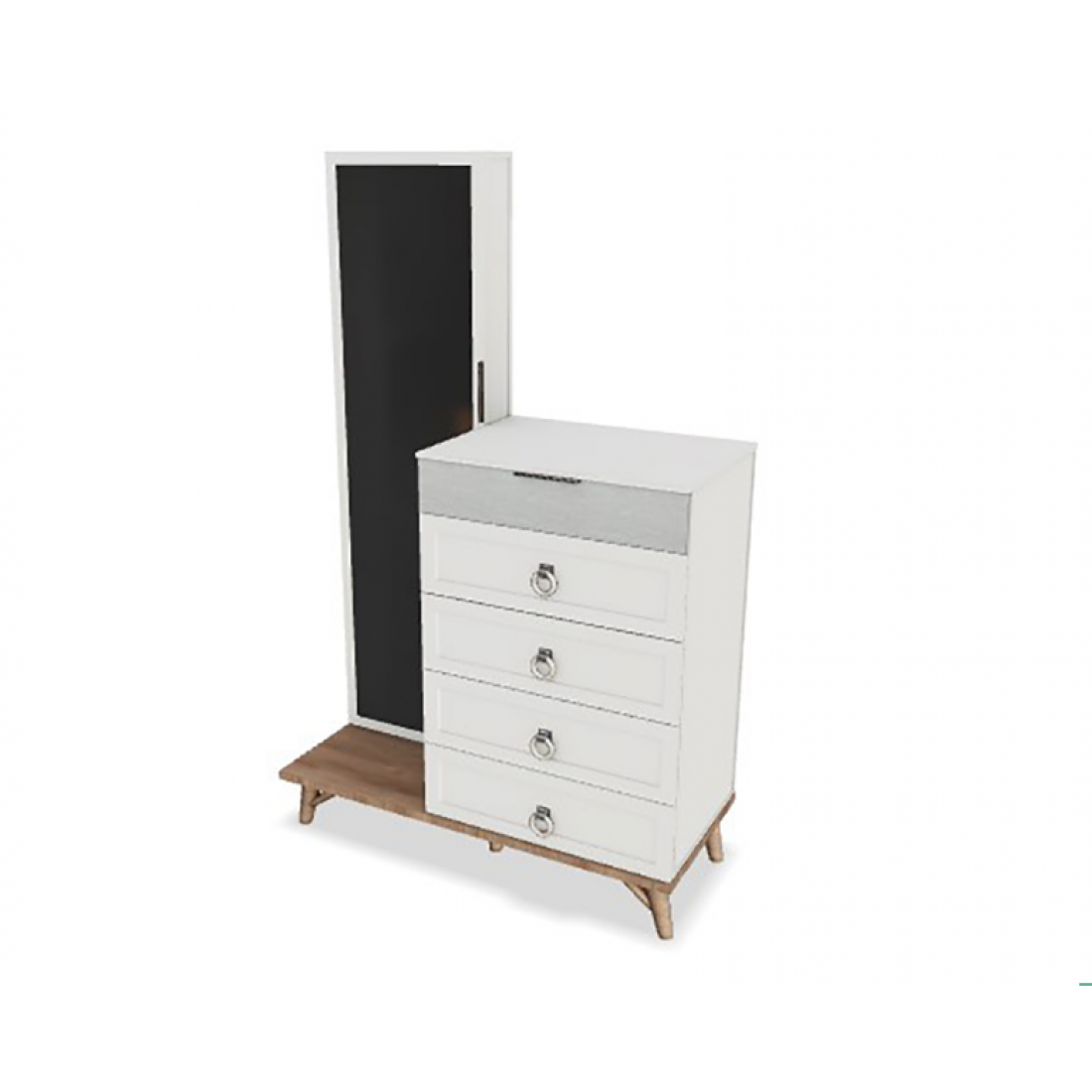Туалетный комод с ящиками и зеркальным шкафом с полками из серии Мавенна. Верхний ящик предназначен для хранения ювелирных изделий. Цвет бежевый/ серый. Изготовлен из ЛДСП высокого качества.