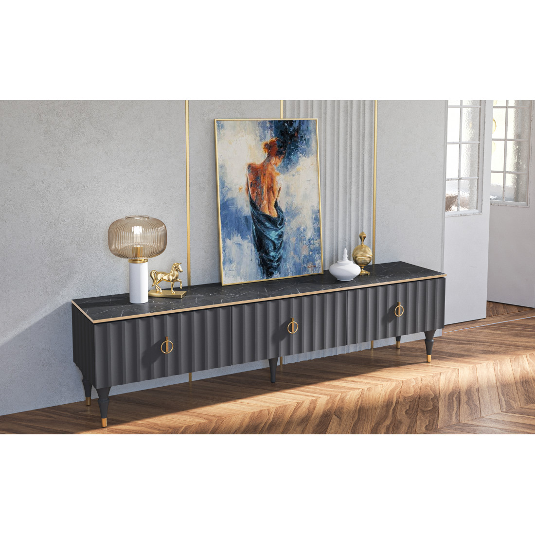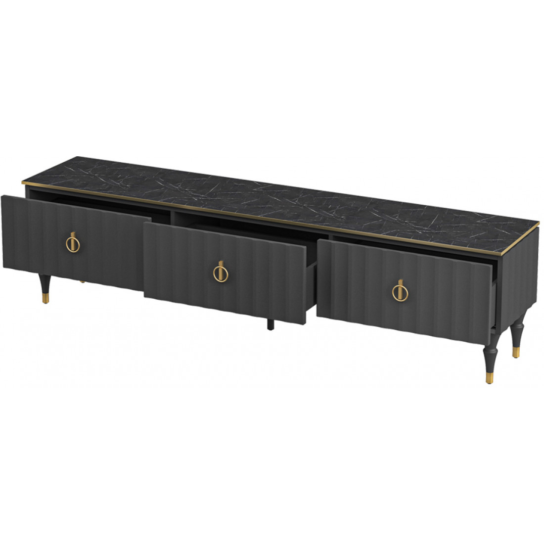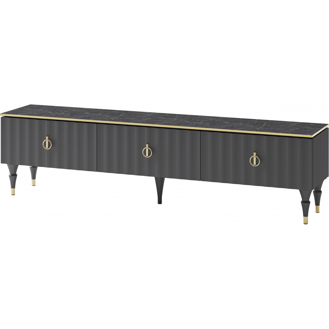 Тумба под ТВ МН-043-06 в гостиную  серии Лоренсо от фабрики Мебель-Неман.Петли с доводчиками, рассчитанные на десятки тысяч циклов закрывания, работают плавно и бесшумно.Фасады и боковые панели в коллекции Лоренсо выполнены с инновационным покрытием Serica от итальянских производителей. Это современное, матовое, антибликовое покрытие, приятное на ощупь SOFT-TOUCH. Поверхность защищена от царапин, благодаря специальной обработке. При возникновении микродефекта, его можно легко устранить с помощью термического сглаживания. Технология ANTI-FINGERPRINT гарантирует отсутствие отпечатков пальцев на фасадах.