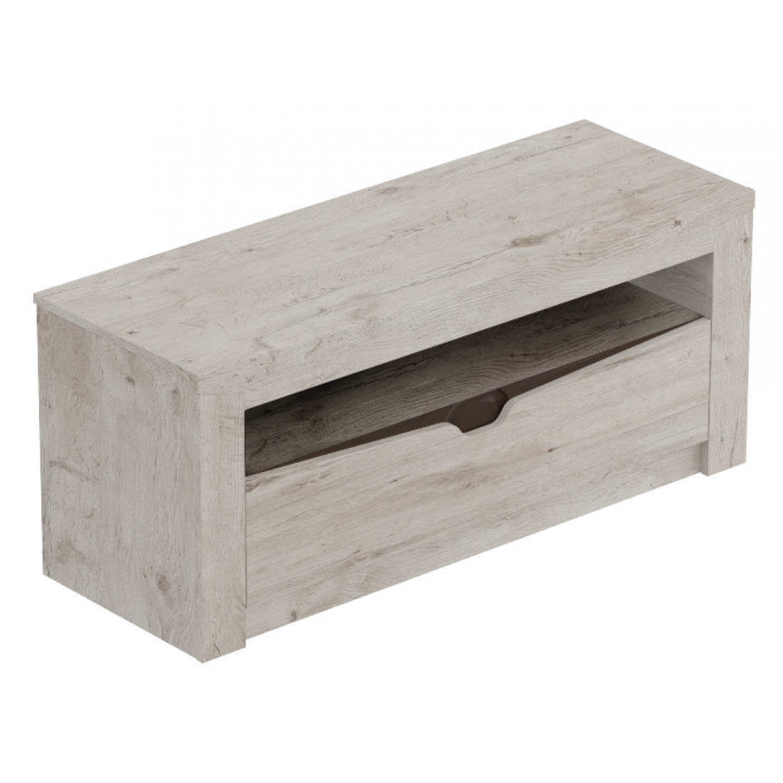 Тумба под ТВ Соренто с ящиком дуб бонифаций порадует ценителей лаконичных форм своими простыми, современными линиями и приятной светлой деревянной текстурой.